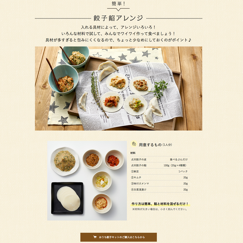 株式会社点天 おうち餃子キットとアレンジレシピLP