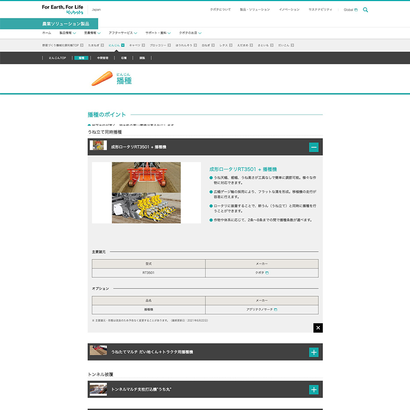株式会社クボタ 野菜づくり機械化便利帳 サービスサイト