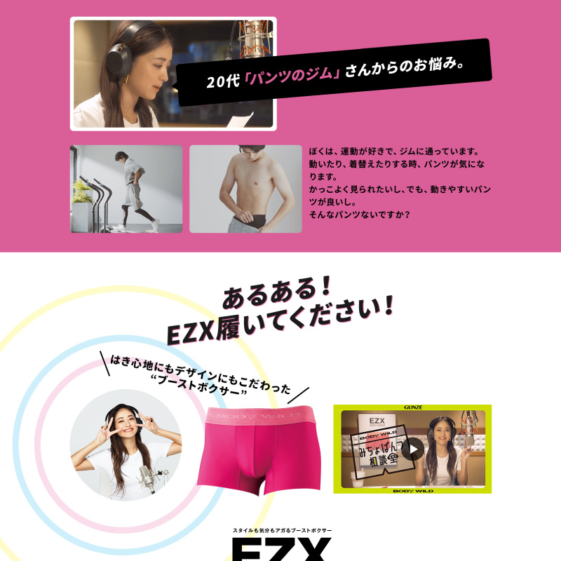 グンゼ株式会社 BODYWILDみちょぱんつ相談室 LP