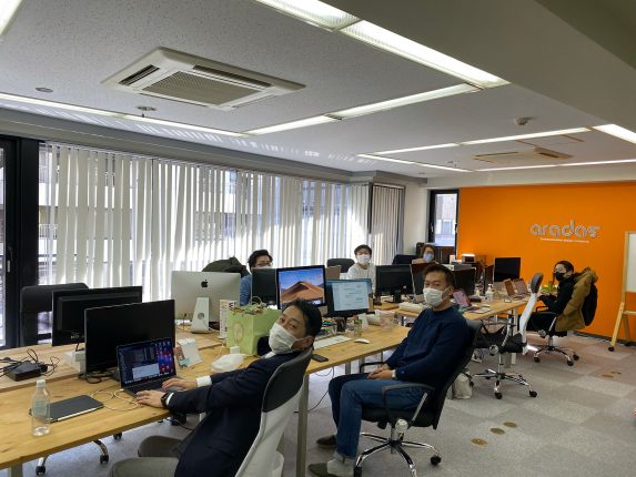 東京オフィスのニューフェイス、Kさん。はい。大阪と東京、場所は離れていても、助け合いながら、アラダスのクオリティを上げていきますので、これからの活躍を期待しています。