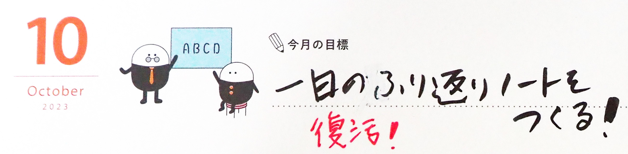 10月の目標は、振り返りノートの復活。自分を緩めてやる時間を意識して持つことにしました。