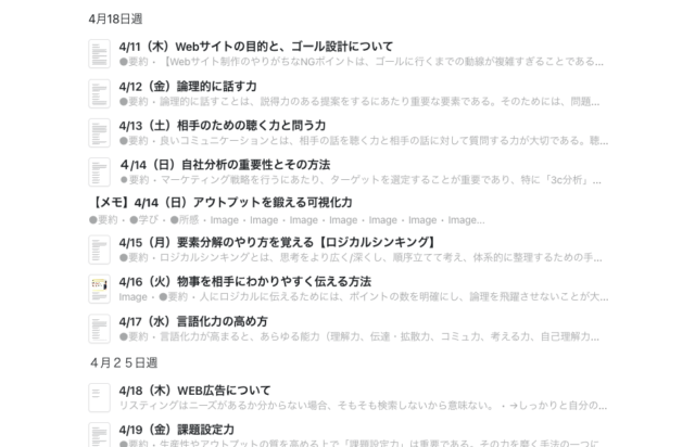 craftというメモアプリを活用して、毎日のレポートをまとめています。とても便利なのでレポートまとめ以外でもよく使っています!(craft : https://www.craft.do)