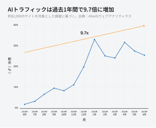 引用元: 「AI トラフィックはこの 1 年で 9.7 倍に増加」