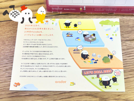 この人生とはサイコロを振るようなものという、「偶然」と「必然」という考え方から、今回のカレンダーのストーリーができました。